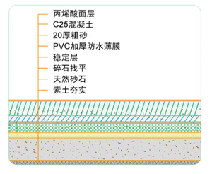 隔水层:采用新PVC加厚水薄膜,搭接处应大于200MM,边沿余量大于150MM。