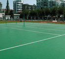 产品特性 耐候性好:任何天气状况下,皆能确保高品质。弹性强、硬度适中,适合各种球类活动的运动场地。 排水优良:特殊排水设计,表面平坦,不积水。 色彩柔和:视觉效果较好,可多种色彩搭配,兼具美化环境的功能。 粘接力强:对于水泥混凝土、沥青混凝土、木材均具有较好粘接力。能抗拒各种自然条件侵蚀,经消光处理后,颜色鲜艳而不刺眼。 弹性很好:能减缓腿、脚的疲劳,又不改变球的速度。 磨擦力强:采用柔性止滑材料加耐候面漆喷涂技术,平而不滑。